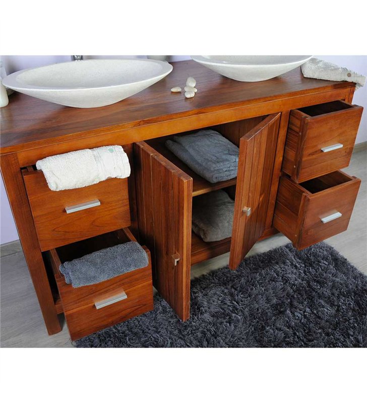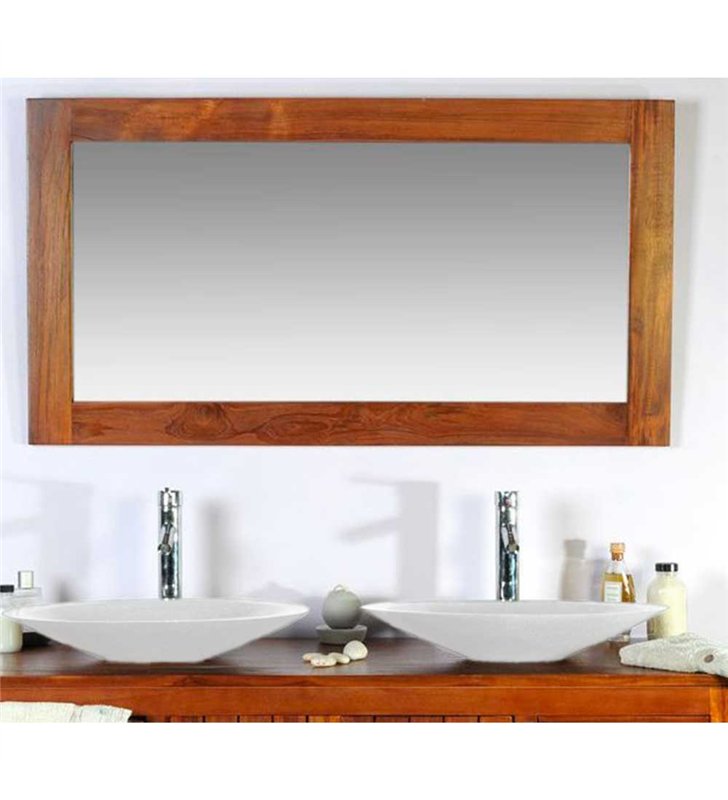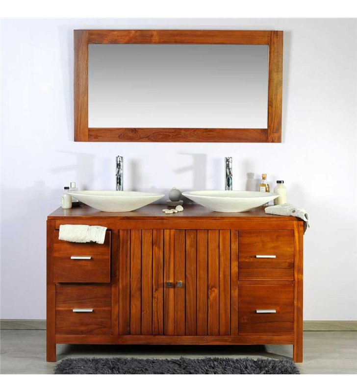 Ensemble meuble vasque et miroir salle de bain en bois teck naturel 140 cm